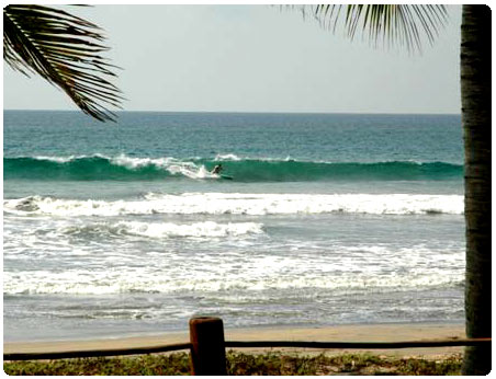Casa Viva is about a 25-minute walk from the village of Troncones and a 10-minute bike ride. In the morning, the pelicans pass by like pilots on a bombing run, looking for lunch. You know it's afternoon when you see them flying back in formation. The photograph to the left is of a guest of Casa Viva surfing right out in front of Casa Viva. For more info on surfing go to www.isamexico.com